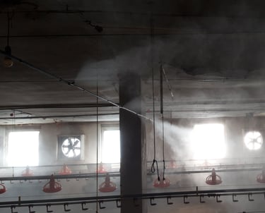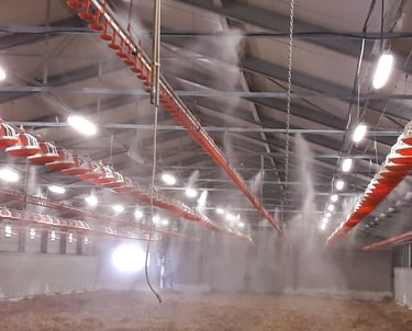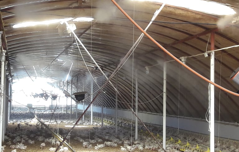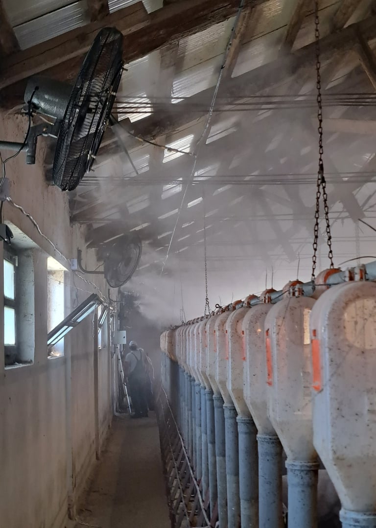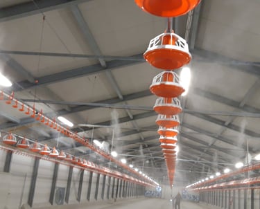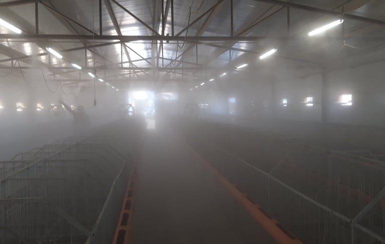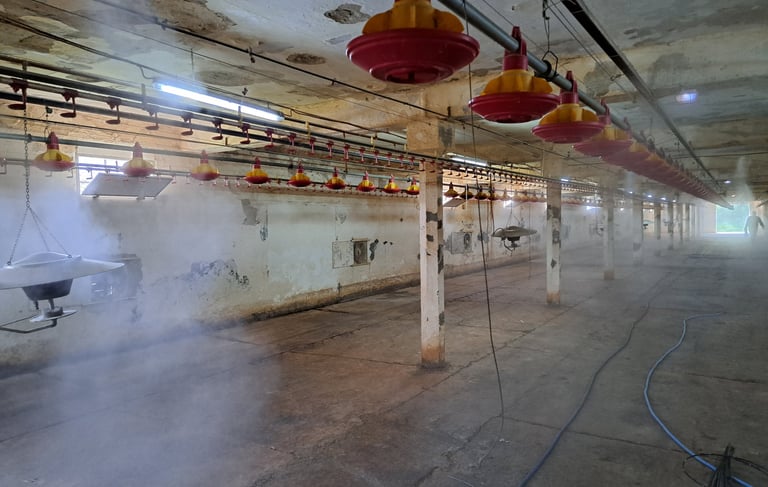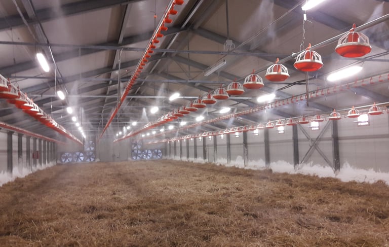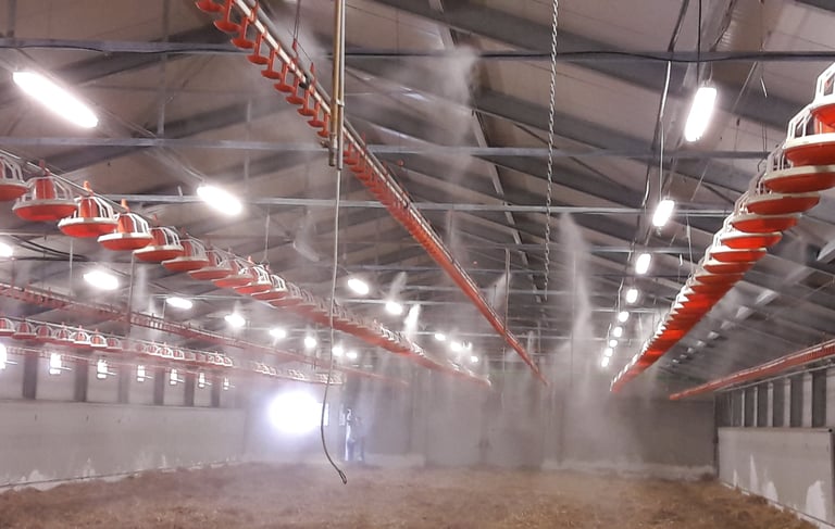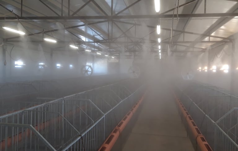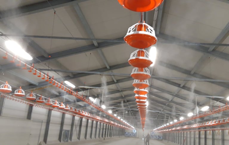 Modern párásító-hűtő rendszerek telepítése állattenyésztéshez és növénytermesztéshez.